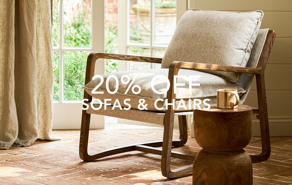 Our selection of consoles and storage boxes hide the clutter you don't want to see, while shelf ladders and units display all those mementoes you do. Discover our chairs and long benches, the ideal choice for Sunday lunches around the dining table, and our outdoor seating range, perfect for lounging in the sunshine afterwards.