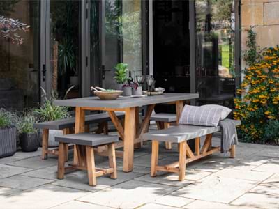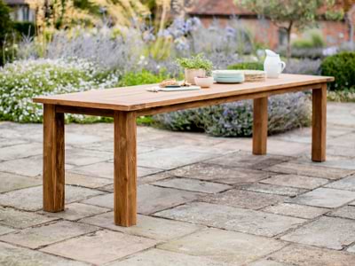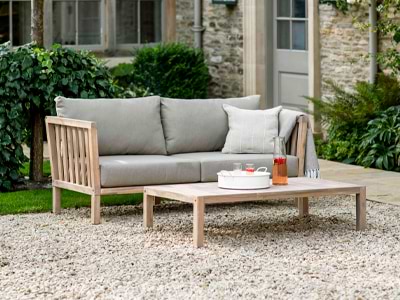 Our teak is well seasoned, naturally aged and inherently rustic in finish. The timber is mixed with responsibly sourced (SVLK certified) newer teak, to aid construction. It is very durable in a UK climate and will not shrink, move or crack due to the low-level moisture. Every piece is finished with a wax seal in a rich honey shade, which will fade over time to a beautiful silver grey.