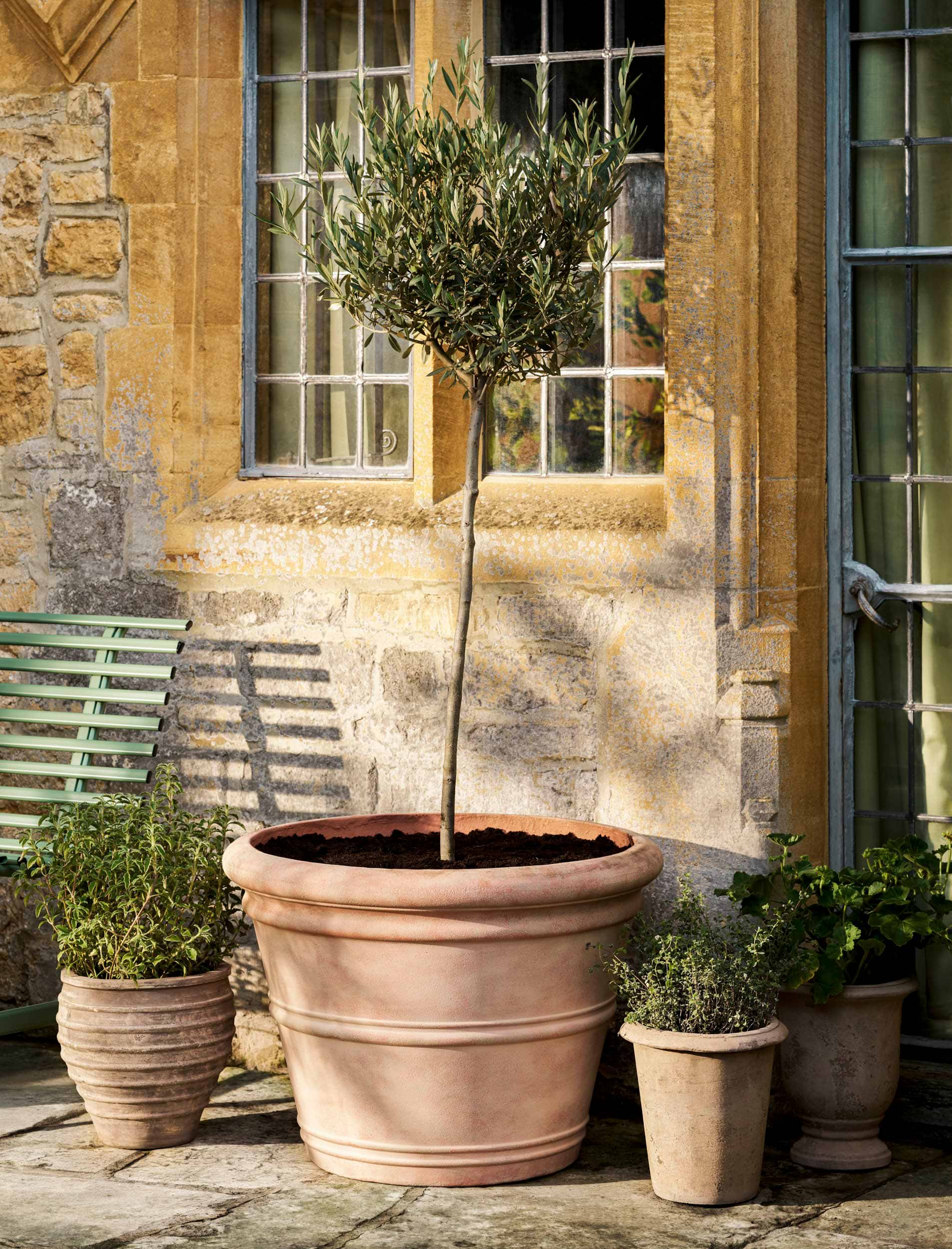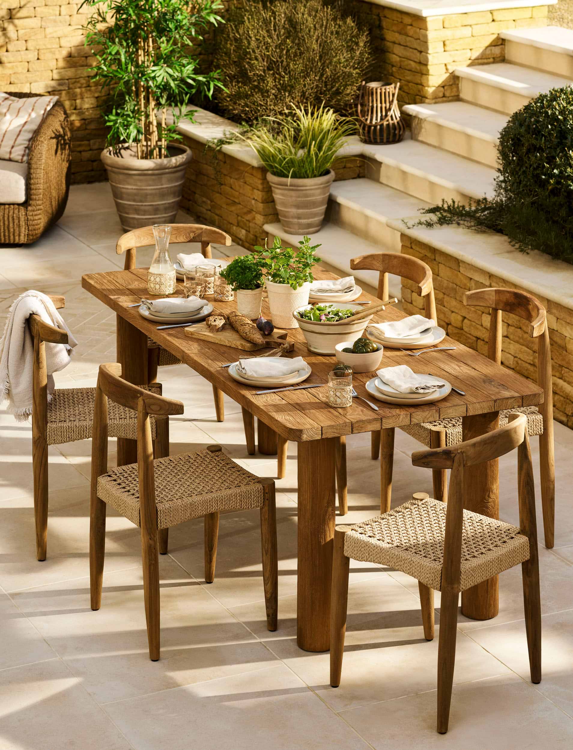 - Natural materials such as wood, stone and terracotta