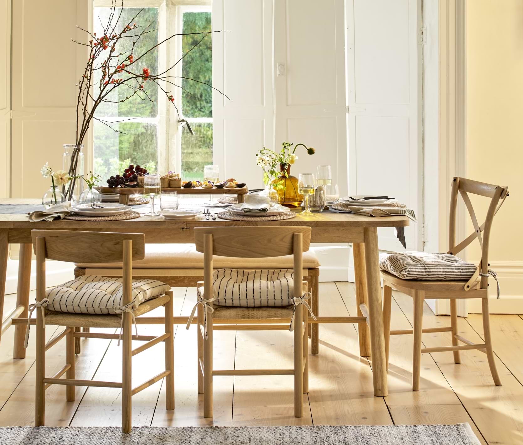 A table that grows with your life’s moments. The Longworth Extension Dining Table comfortably seats six, perfect for everyday family meals, but with a smart butterfly extension that expands to host eight when friends and family come calling. Made from solid American oak, it’s a timeless piece built to be part of your home for decades. Minimal assembly means it’s ready to welcome guests in no time. Style it with Oaksey Checked runners and napkins, and pair with our Longworth or Ferndale chairs to complete a warm, inviting dining space that truly feels like home.